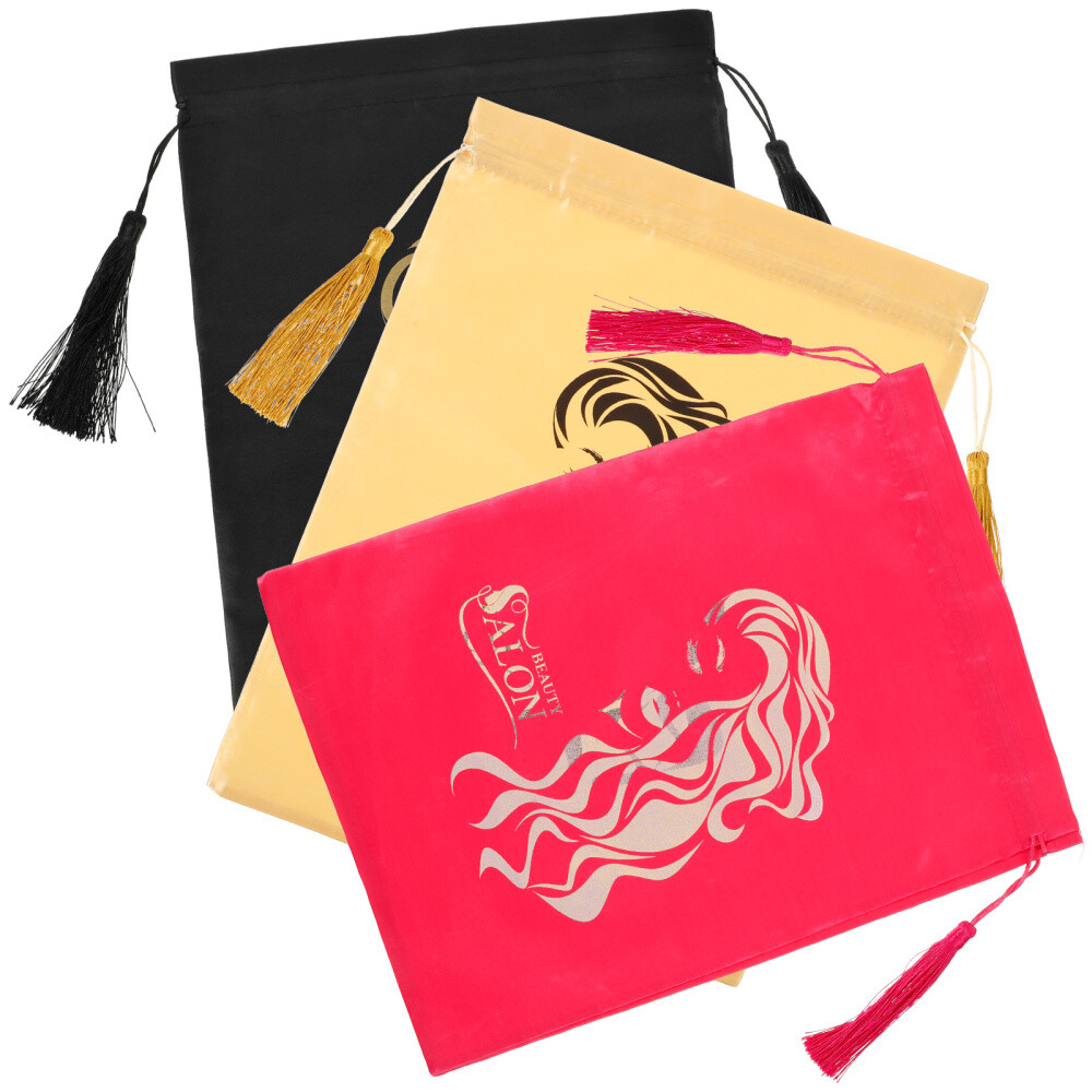 3 Pcs Wig Packaging Bag Travel Satin Bags with Drawstring for Wigs