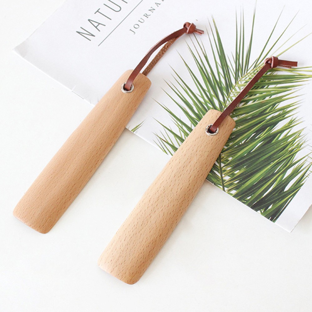 2pcs Strong Wood Beech Shoe Horn Wooden Shoe Horn Long Handle Slim Shape