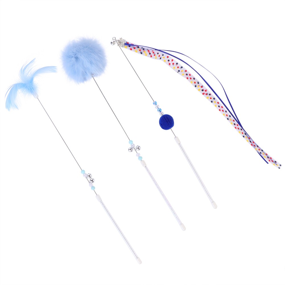 1 Set of 3Pcs Interactive Pet Cats Toy Teaser Stick Teaser