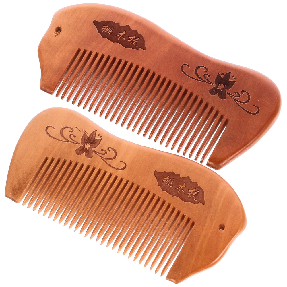 2 Pcs Peach Wood Hair Comb Anti-static Styling Combs for Women