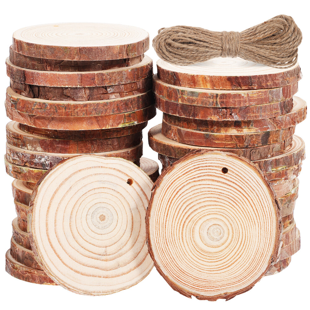 50 Pcs Wood Disks with Hole Wooden Boxes for Craft Round Chips Child